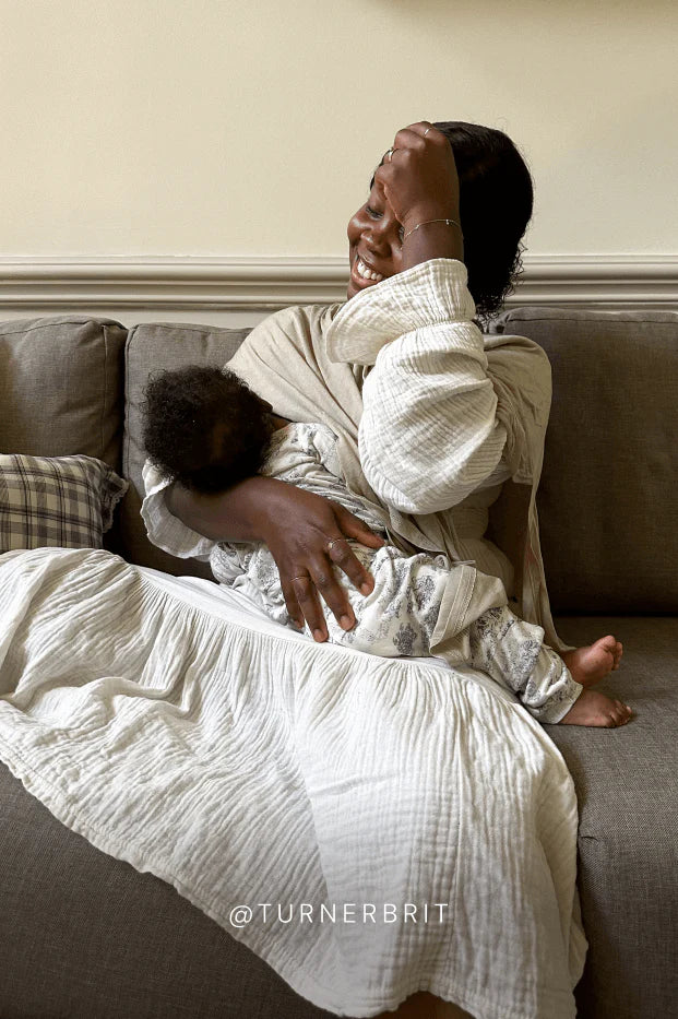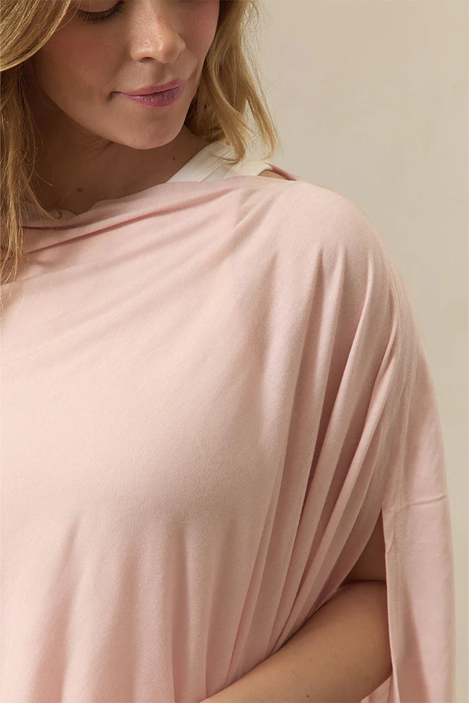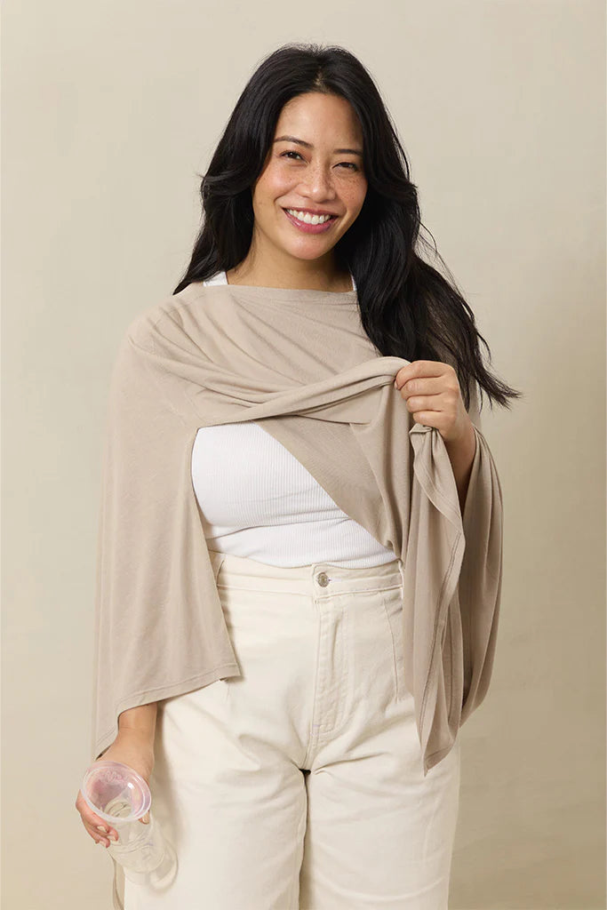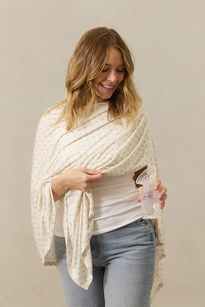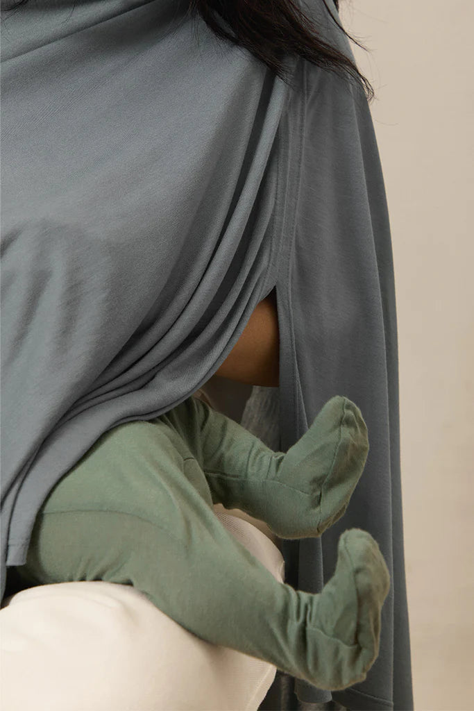 The Bleu Toile Nursing Cover from Solly Baby is a stylish and multifunctional breastfeeding cover designed for the modern, conscious mom. Featuring a timeless boatneck design, it allows for easy viewing of the baby during feeding while providing privacy and comfort. Crafted from buttery-soft, sustainably-sourced 100% certified TENCEL™ Modal fabric, it is lightweight, breathable, and gentle on delicate skin