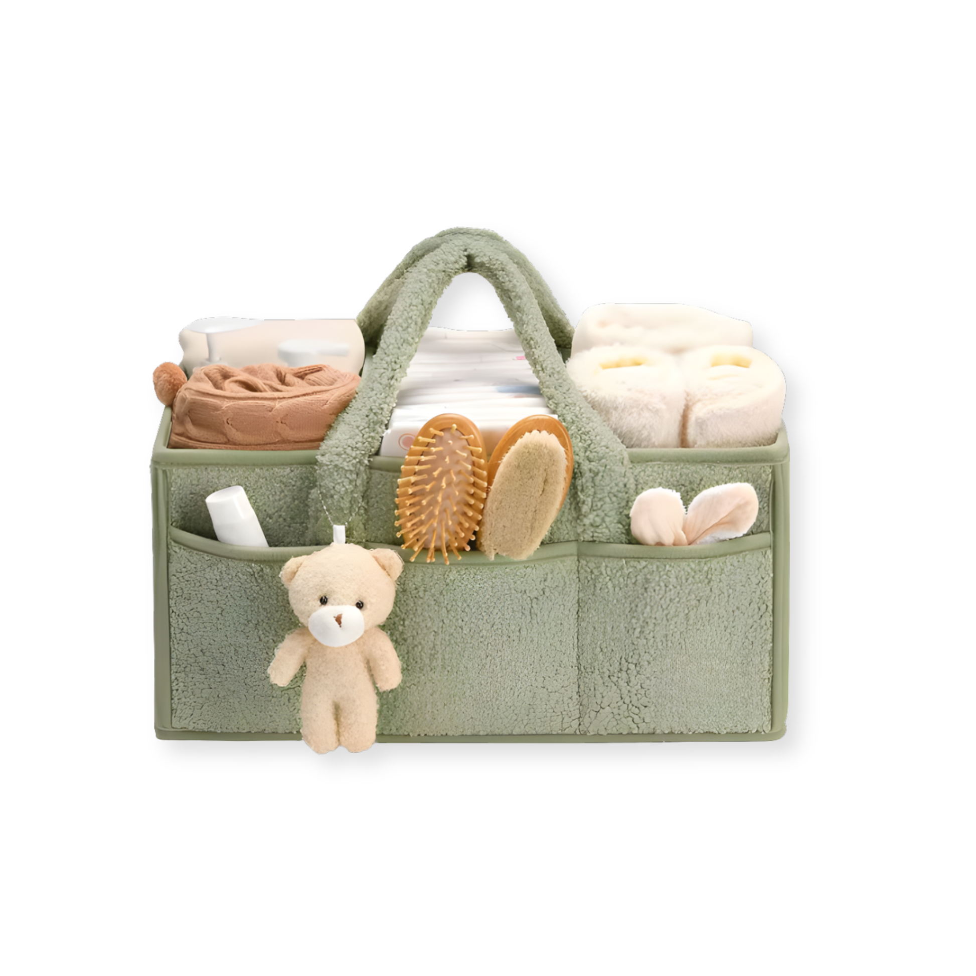 -Diaper Caddy Organizer – Keep all your baby essentials neatly arranged with this spacious and easy-to-carry organizer. Perfect for diapers, wipes, lotions, and more, it’s available in Green, Pink, or Ivory to suit your nursery style.